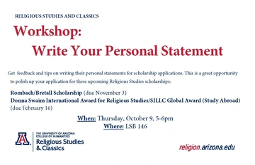 Prof. Daisy Vargas is holding a workshop to provide feedback and tips on writing a strong personal statement for scholarship applications.